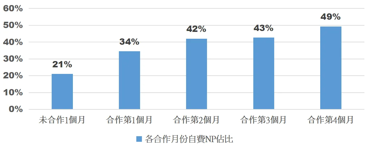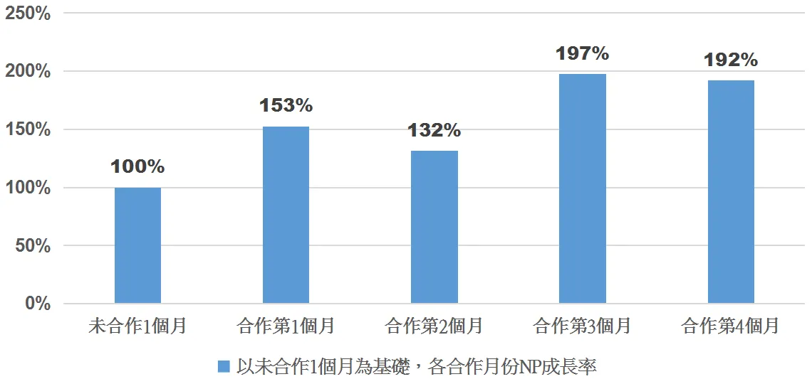 合作第一個月NP雖然有增加,但當時還有同時投放Facebook廣告,無法確定影響人數的原因,第二個月之後只有購買台灣好醫生,數據比較準確。